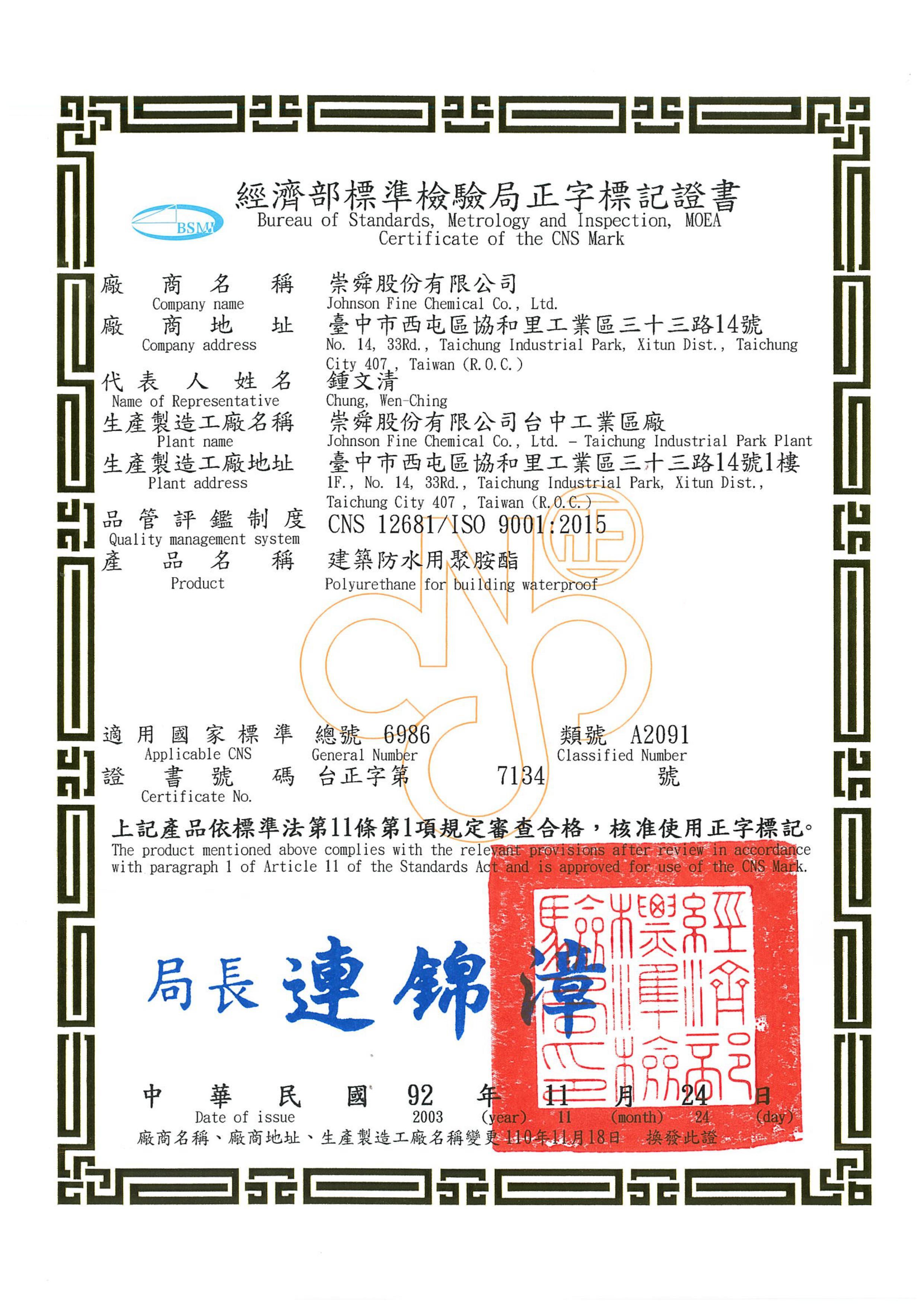 您可於本站內輕鬆的找到具有國家CNS標章及MIT微笑標章的環保聚胺酯CNS PU防水材: